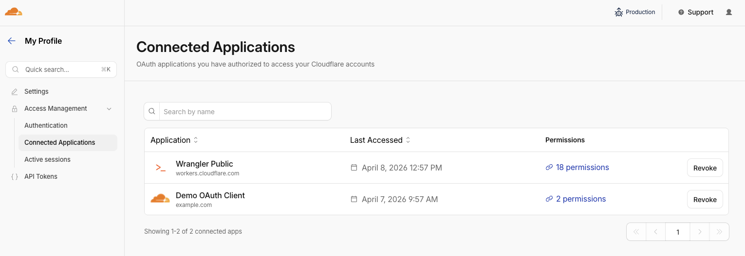 When you connect third-party applications like Wrangler to your Cloudflare Account using OAuth, you're granting that application access to your account’s data. Over time, you may forget why you granted a third party application access to your Account in the first place. Previously, there was no central place to view & manage those applications. Starting today, there is.
