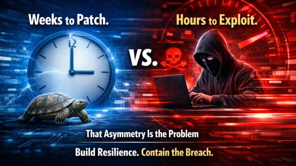 We operate on patch cycles measured in weeks against adversaries operating on exploit cycles measured in hours. That asymmetry matters.