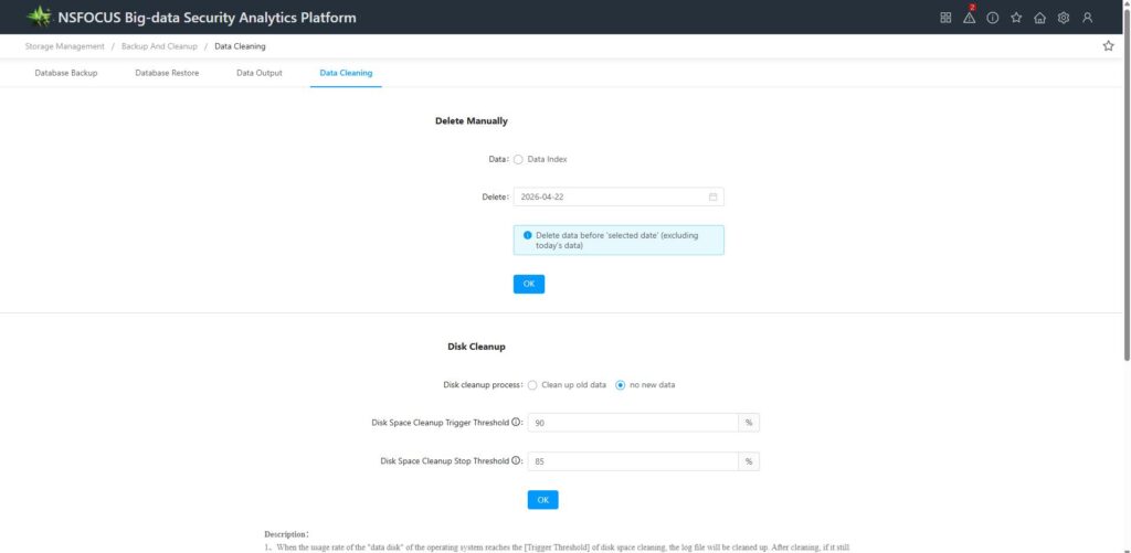 Configuration: Storage Management – Backup and Cleanup – Data Cleanup
