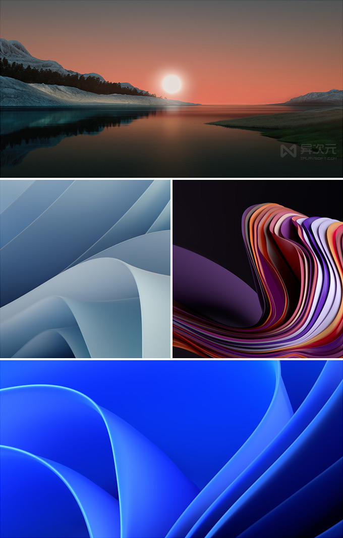 本文仅仅是在网页预览图上有水印,而提供下载的压缩包内的 Windows 11 官方内置壁纸均原生提取自操作系统,原汁原味没加水印,也没做任何的修改或修饰,大家可以放心下载收藏。