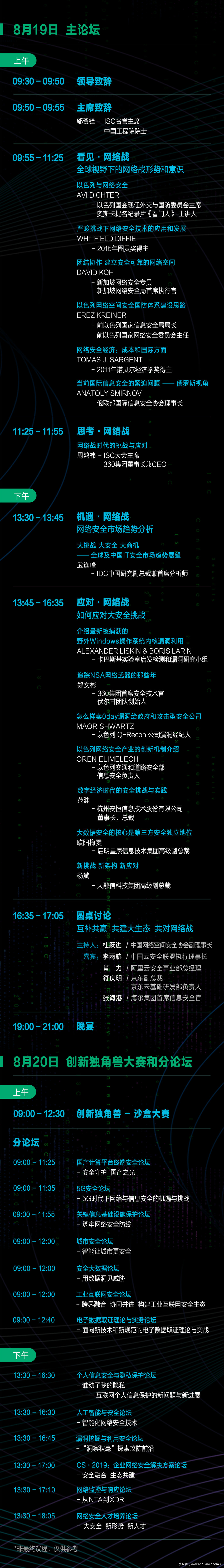 互联网安全大会(简称“ISC”)是亚太地区规格最高、规模最大、影响力最深远的安全峰会,由全球网络安全领军企业360承办,政府、国内外安全企业、高校、研究机构等广泛参与。ISC自2013年首次举办以来已成功举办6届。第七届互联网安全大会(ISC 2019)将于8月19-20日在北京雁栖湖国际会展中心召开,除了聚焦5G、物联网、人工智能等新技术下的安全问题外,还将关注国家安全、智慧城市安全、人才培养、个人信息安全等焦点问题。在会议形式上,ISC 2019将开门办会,与政府部门、安全企业、互联网公司安全部门、投资机构等,共同策划、组织议题丰富、内容重磅的分论坛。